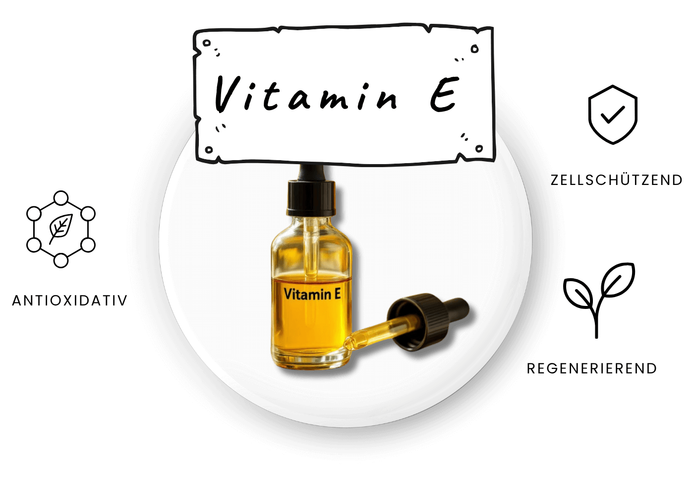 Vitamin E fängt freie Radikale ab – jene winzigen Teilchen, die Zellen schädigen und Hautalterung beschleunigen können. Es schützt die natürlichen Lipide der Haut und bewahrt sie vor dem Austrocknen. So unterstützt es die Regeneration, stärkt die Barrierefunktion und verleiht der Haut mehr Widerstandskraft.