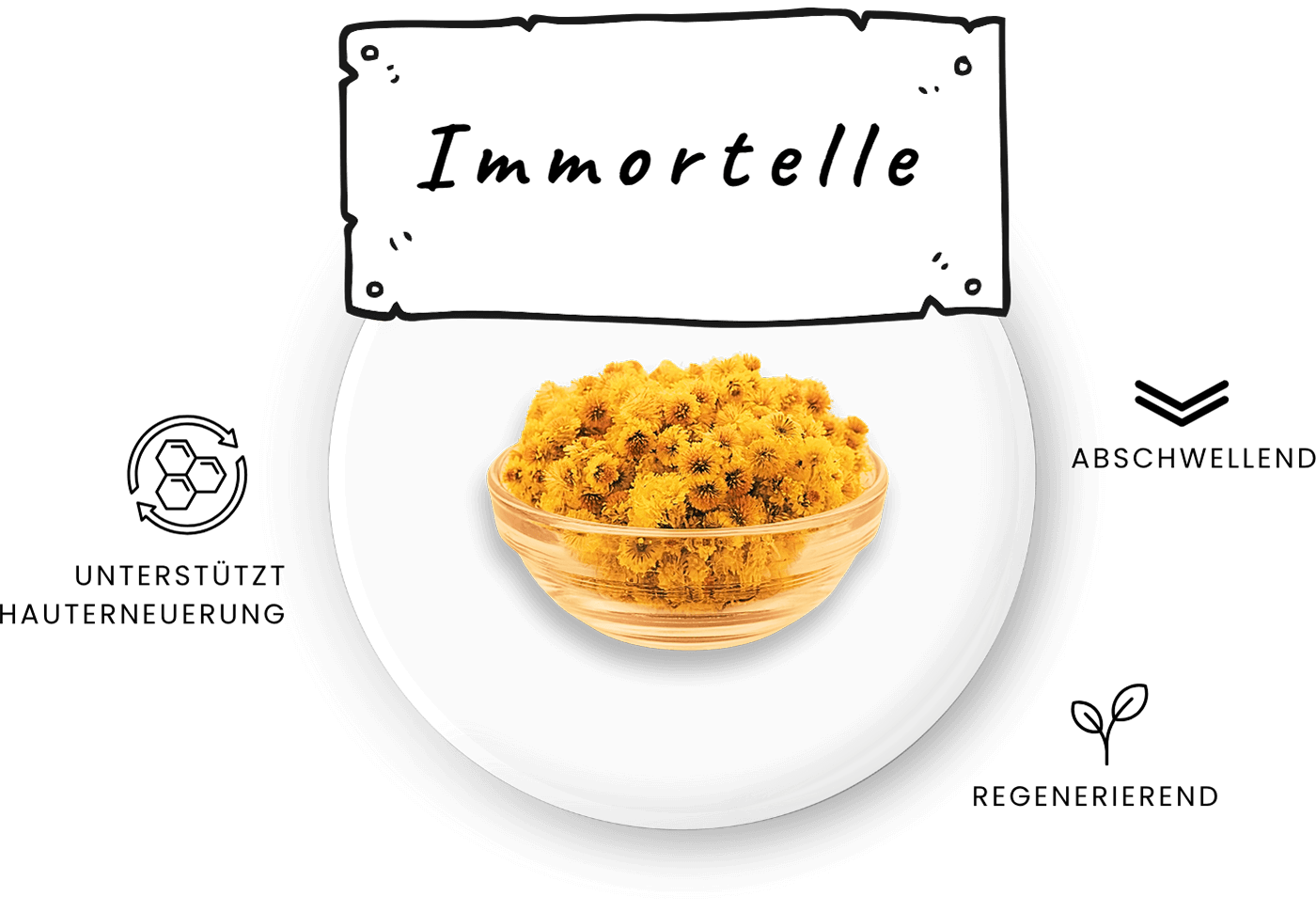 In WUNDERPO® unterstützt Immortelle die Haut dabei, sich selbst zu erneuern, stärkt das Gewebe und hilft, gereizte Stellen zu beruhigen.